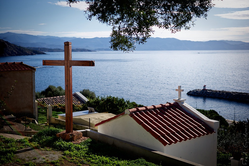 Depuis l'entrée du village, une courte balade permet de rejoindre la crête où on trouve deux ruines qui dominent la mer : une tour génoise colonisée par les oiseaux, et une maison fortifiée :