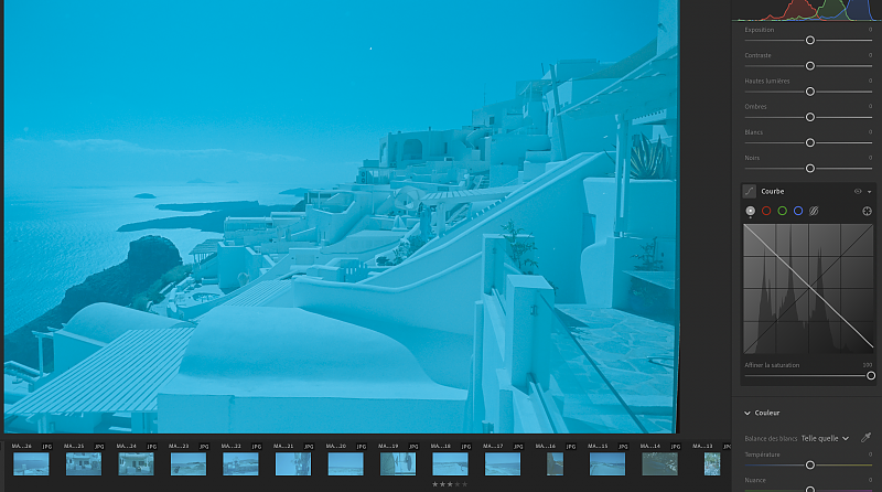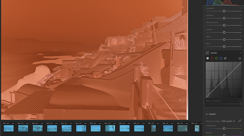 Il faut tout d'abord s'affranchir du masque orange du film. Pour cela, cliquer avec la pipette de la balance des blancs dans la marge orange du film. Il n'y en a pas beaucoup sur l'image.... Peut-être en bas à droite ? Question subsidiaire : pourquoi LrC ne pourrait-il pas inverser des négatifs, alors que Lr pourrait le faire ? |