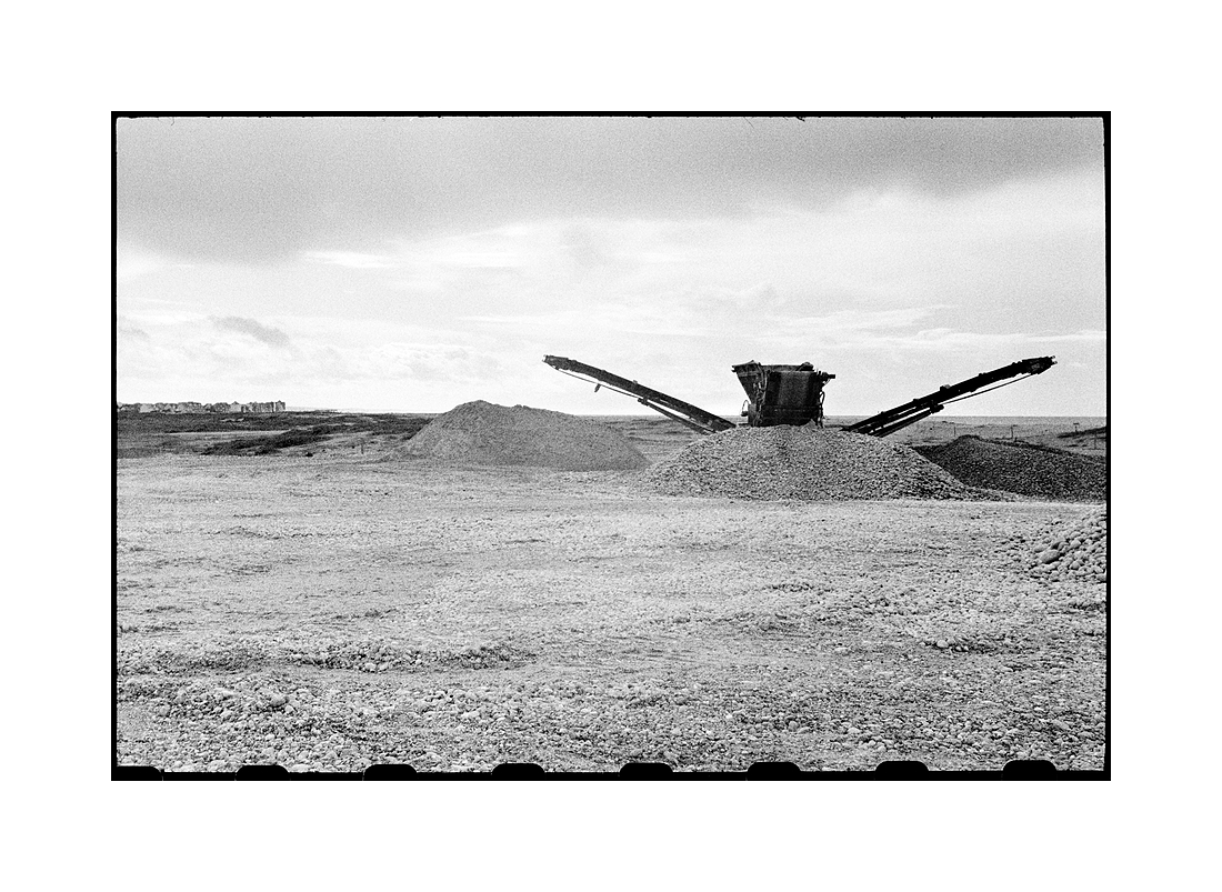 Après une une pause au pays des terrils et des chevalements , je reprends ma promenade en baie de Somme sans vraiment changer de thème, vous allez vite comprendre: Au Nord de Cayeux, le long du poulier de galets qui longe Brighton les bains et protège la côte des assauts de la Manche, la plage est aussi une digue et une carrière. On y exploite les galets de silice les plus purs au monde. Ils servent pour l'industrie, la décoration mais aussi pour protéger... Cayeux sur mer la ville Sysiphe ou la ville Shadok comme on voudra. Quand il se promène, le photographe voit le même spectacle que tout le monde. Mais lui, il va s'arrêter pour regarder. E Boubat |