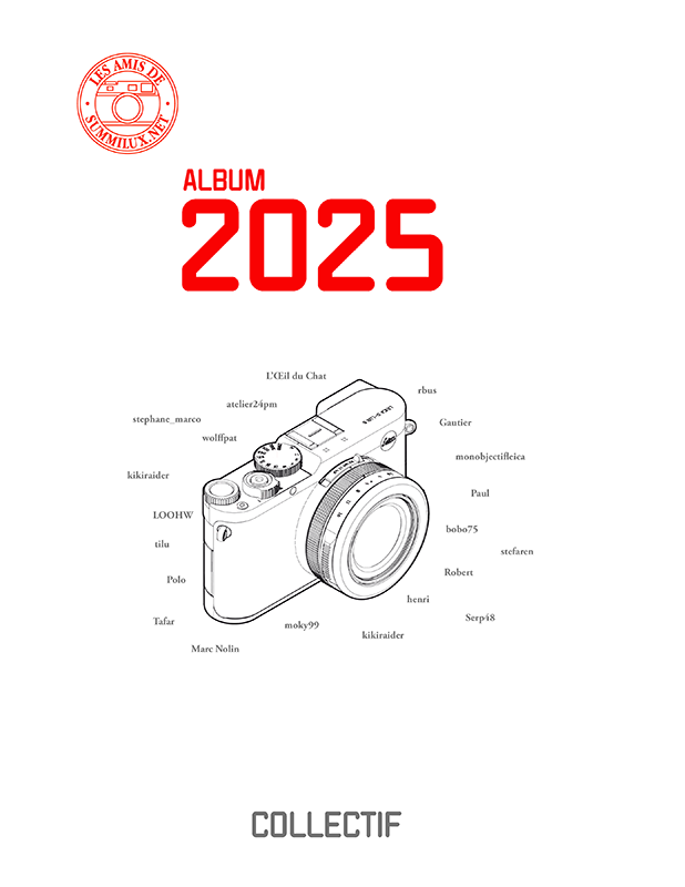 Le top restant bien sûr la série des Albums de summilux.net (la version 2025 sort sous peu) !![]() Couverture réalisée sous Photoshop, pour le format magazine de Blurb. Subtilité : la police utilisée est la NN1050. |