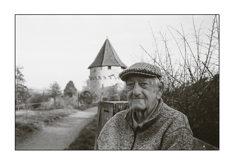A Bergheim le long du remparts, un vieil homme assis paisiblement sur un banc raconte qu'enfant encore, que toute sa famille composée de 12 personnes habitait dans la tour des sorcières que l'on aperçoit en arrière plan. IIIf+Summaron 3,5/3,5 Foma 200 et LC29 Qui mieux que la pierre bavarde au fil du chemin se faisant, peut apporter le silence au promeneur A quoi bon se lever si c'est pour se laisser pousser par le vent La Pierre et le caillou coulent de la même façon dans l'eau |
