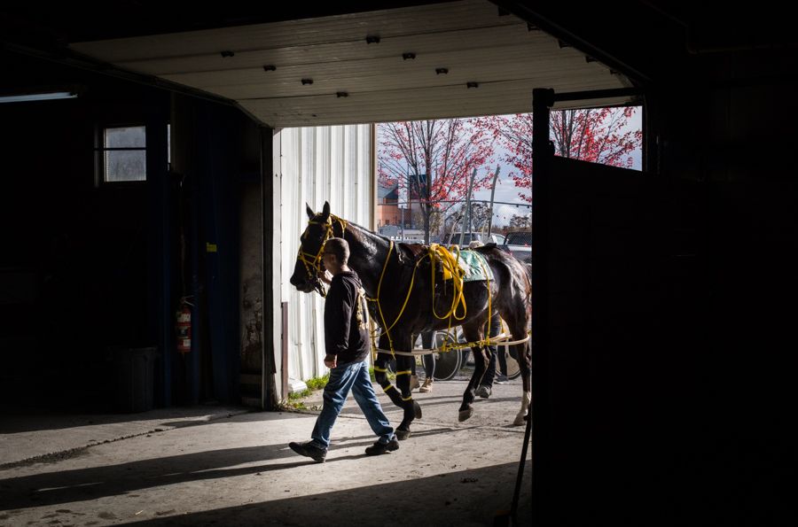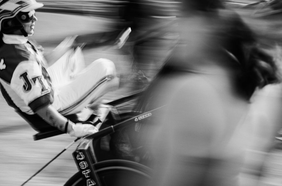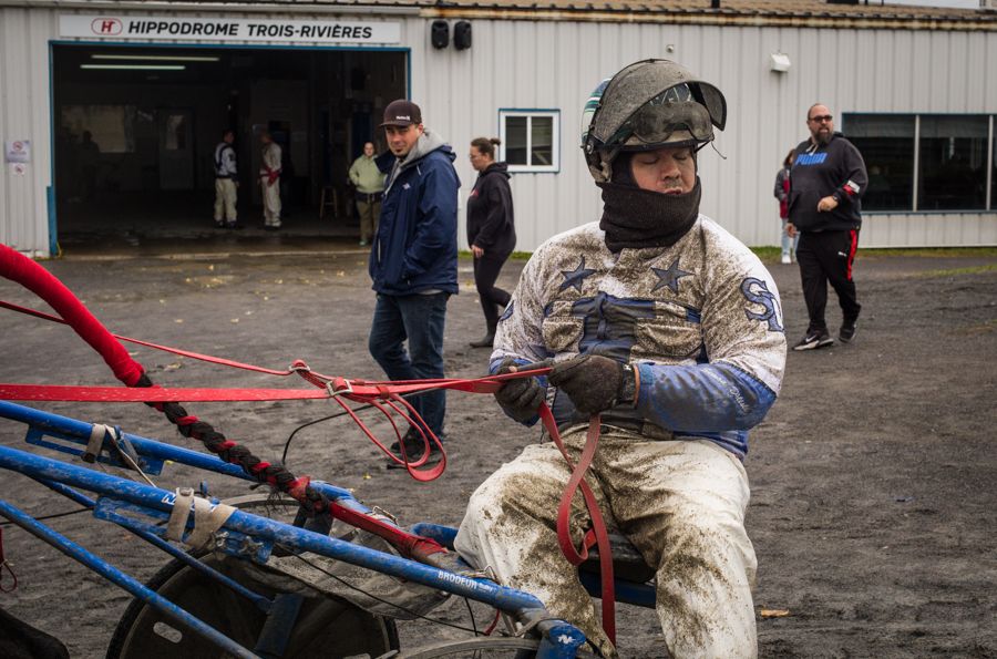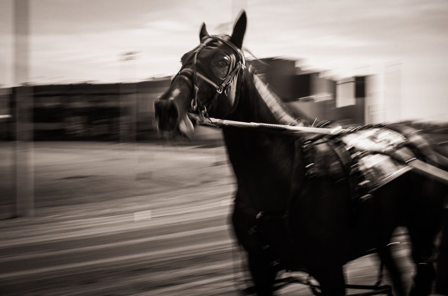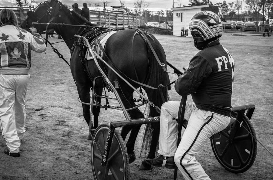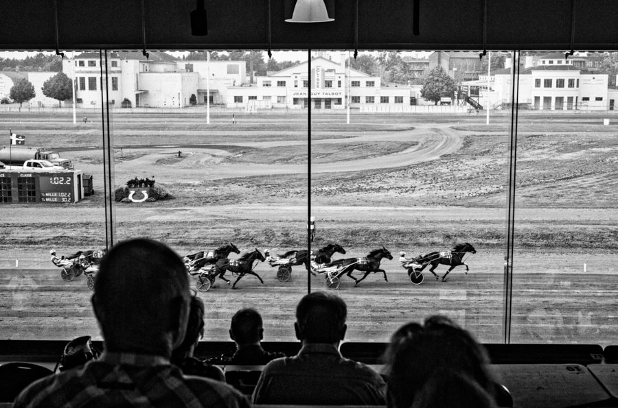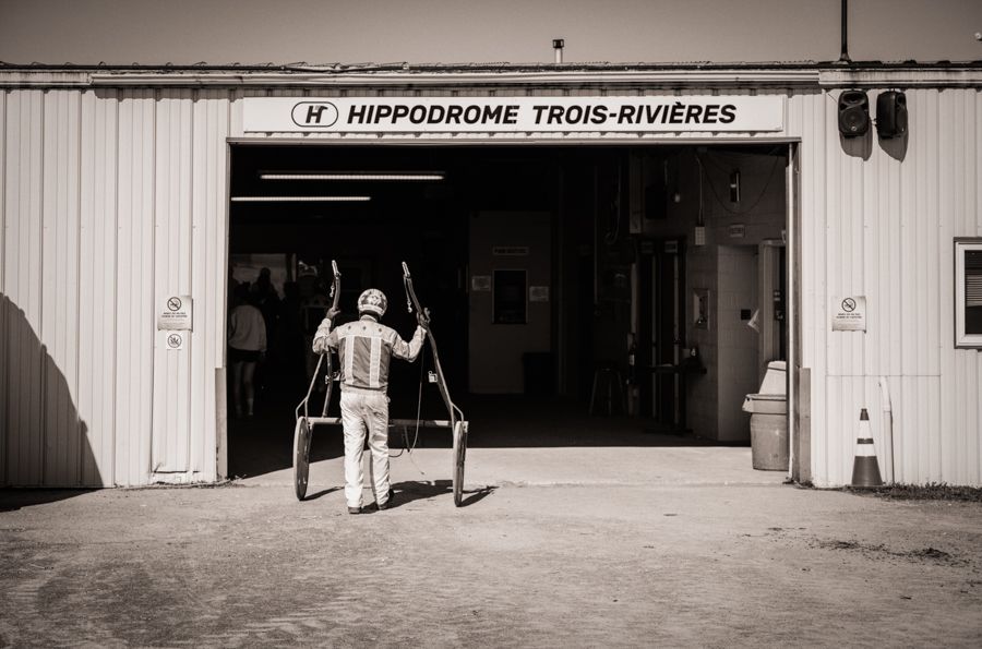 Depuis juillet dernier, je suis présent 2 jours/semaine dans un hippodrome, celui de Trois-Rivières (le dernier encore en fonction au Québec), avec droit de passage sur tout le circuit et les écuries. Je tente de mettre en image l'ensemble de la vie de ce type d'établissement en voie de disparition. Je partagerai mes images sur Summilux, de temps en temps... Voici d'ailleurs un échantillon de mon travail. Je tente plusieurs types de traitements, n'ayant pas encore faite mon choix... Vos réactions seront appréciées.