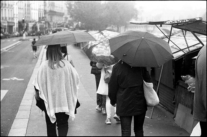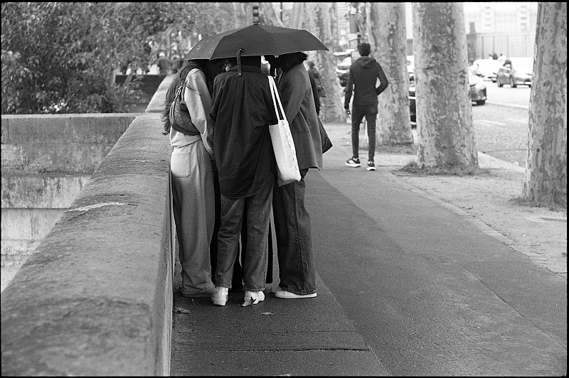 Non, un M-P (240) stock. Peut-être l’objectif, un MS-Optics 4/24 muni d’un filtre UV/skylight. Ces parapluies portaient un logo, ils n’étaient peut-être pas noirs mais violets, je ne sais pas. Une sortie de collègues de la même boite avec les pépins « maison ». Veni Vidi Vissi ! |