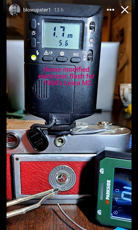 J’ai pas mal d’expérience avec les flash et depuis longtemps. Je dois avoir plus d’une 20aine dont 5 Leica. Le 24 D est ttl argentique et numérique, le sf 20 seulement argentique. Les prix de ces flashs sont aléatoires, entre 20 et 150 euro pour un sf20. Donc ça m’arrive d’en acheter aux puces pour des clopinettes sans savoir l’usage que j’en ferai. Ce montage correspond exactement à mon cahier des charges: Petit flash qui ne fait pas piquer du nez un Leica M Petit flash qui passe dans une poche de pantalon Flash rapide Flash discret et pas trop vilain Flash avec calculateur de diaph en mode manuel (très rare avec de petit flash) Précis en mode A Et va parfaitement sur mes M2 M3 sans sabots intermédiaire ni rallonge, ce qui très pratique. Le fils est un poil trop long (4mm) J’utilise rarement les modes ttl avec mes boîtiers, la plupart du temps le ttl légèrement sous exposé pour le fil-in est laborieux et aléatoire. Bref, je pretends plus avoir donné une plus value à ce flash ! |