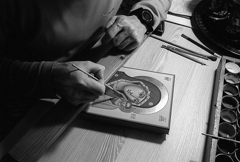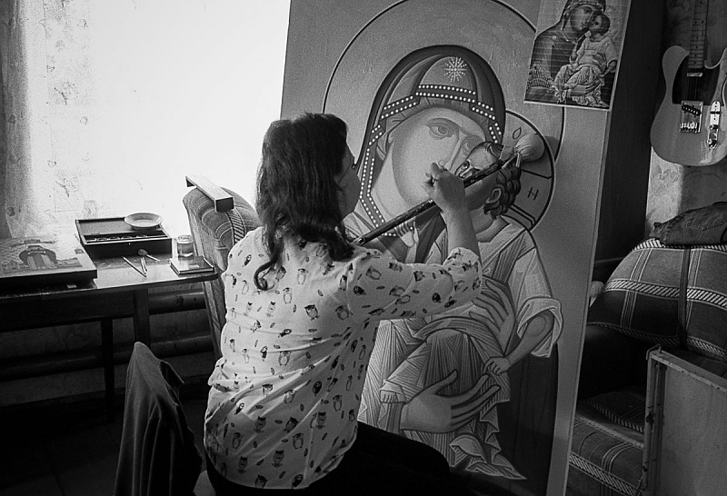Bonjour. Cette série d'images n'est pas la suite logique des photos publiées précédemment. J'ai visité une petite ville au nom de Palekh connue dans le monde entier pour la production de ses icônes orthodoxes. Comme toute bourgade éloignée de la civilisation, sombrée dans la boue et la misère, on y trouve toutefois une très belle église du XVIe siècle, des magasins de souvenirs pour les pèlerins orthodoxes aux prix astronomiques et surtout des écoles de production d'icônes qui attirent les peintres de tout pays. La ville accueille avec le portrait du dernier tzar installé par un nostalgique de la grande Russie dans son jardin privé; en face de l'entrée à l'église, entretenue par des croyants et pour les croyants, trône, dans toute sa majesté, le buste de Lénine ressuscité du néant de la maudite Pérestroïka et remis à la vénération par les mélenchonistes russophones. Tous ces véritables patriotes, fanatiques et parasites, naturellement, à la solde de l'Etat. La production de ces planches de bois est très importante puisque ces dernières sont exportées dans toute la Russie et aussi à l'étranger. Le mythique Andreï Rublev, en réalité un simple fruit de l'imagination du talentueux cinéaste Andreï Tarkovski n'aurait pas plus de chance de créer un moindre chef-d'oeuvre aujourd'hui comme il n'a jamais crée sa Trinité hier. Leur fabrication n'a rien de frivole et reste très encadrée par l'église locale qui impose les sujets, la manière de faire et le design de chaque icône. Pour pouvoir les vendre, les peintres indépendants sont obligés de les faire bénir par les popes fonctionnaires qui touchent au passage une confortable commission, ce petit business bien juteux étant le rêve inavoué de tout prétendant au paradis céleste. 1. ![]() 2. ![]() 3. ![]() 4. ![]() 5. ![]() 6. ![]() 7. ![]() 8. ![]() 9. ![]() 10. ![]() 11. ![]() 12. ![]() 13. ![]() 14. ![]() 15. ![]() 16. ![]() 17. ![]() 18. ![]() 19. ![]() 20. ![]() 21. ![]() André Chastel a écrit un magnifique ouvrage sur mon tableau préféré intitulé ‘L’illustre incomprise’. De mon côté, je dédie cette série de petits zakouski à tous les amateurs de Fiodor Dostoïevski et à cette grande et toujours introuvable incomprise qu'est l'âme russe, avec mon immense respect pour toutes ces personnes photographiées. PS. Les images doivent leur vie à la sainte Trinité de conception et fabrication humaine, et composée d’un Leica MP, d’un Summicron 35mm et de quelques bobines de la 3X. In nomine photographicæ, pelliculæ et spiritus Leicæ. |