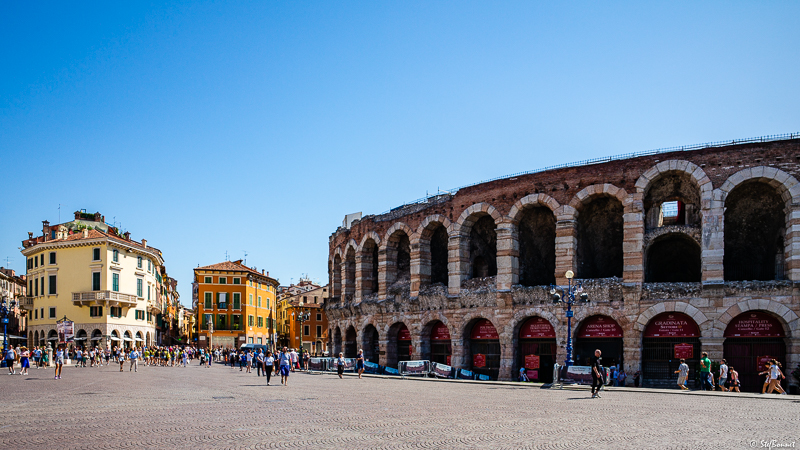 Bonjour à tous, Lors de notre séjour à vélo au Sud du Lac de Garde (voir le fil viewtopic.php?f=29&t=92610), nous avons fait une escapade en train dans la magnifique cité de Vérone, toute proche. En voici un aperçu au M. J'ai sélectionné une trentaine de clichés. Pardon d'avance pour la longueur de ce fil en plusieurs étapes; il m'est difficile de choisir tant j'ai trouvé cette ville riche et photogénique. 1) Porta Bra ![]() 2) Piazza Bra ![]() 3) Les arènes, au fond de la Piazza Bra. ![]() 4) Piazza Bra, depuis le haut des arènes. ![]() 5) Sortie des gladiateurs... ![]() 6) Vertigo. ![]() 7) Castelvecchio. ![]() 8) Vue sur les quai de l'Adige depuis le Ponte di Castelvecchio. ![]() 9) Accident de déclenchement... ![]() 10) Hors le Ponte di Castelvecchio. ![]() 11) Sur le Ponte di Castelvecchio. ![]() 12) Bella regazza pressée. ![]() 13) Belle rue fleurie (mais que ces lampadaires sont moches !) ![]() 14) Piazza Erbe. On y vend maintenant des chapeaux pour les touristes ![]() 15) Le Lion de Saint-Marc est partout présent. Ici, celui de la Piazza Erbe. ![]() 16) Vieilles façades de la Piazza Erbe... ![]() 17) ... Sur lesquelles il reste encore quelques fresques. ![]() 18) Ces vieilles bâtisses ont un cachet indéniable. ![]() A suivre, avec le reste de nos pérégrinations véronaises. |