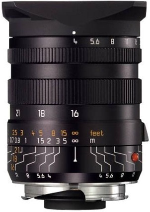 Impressionnant par son angle de champ de 107°, ce nouveau TRI-ELMAR de 16 mm fait la conquête de la photographie super-grand-angle en qualité Leica M. Par sa dispersion moindre et la distorsion du champ d'image à peine décelable il est recommandé pour la photographie d'architecture même avec la focale de 16 mm. Utilisé avec le M8 numérique il offre un effet d'image de 21- 28 mm et permet là aussi des perspectives grand-angulaires extrêmes. L'utilisation de deux lentilles asphériques ont permis d'atteindre la forme particulièrement compact de cet objectif. La nouvelle conception au niveau de la mise au point interne améliore nettement la qualité dans le domaine rapproché, ceci par une adaptation du principe de lentille flottante. Une profondeur de champ brillante est ainsi disponible en photographie hyperfocale dès 0,33 m. Vendu d'abord seul ou sous forme de set avec le viseur grand-angulaire universel M, cet objectif n'est plus livré qu'avec ce viseur.